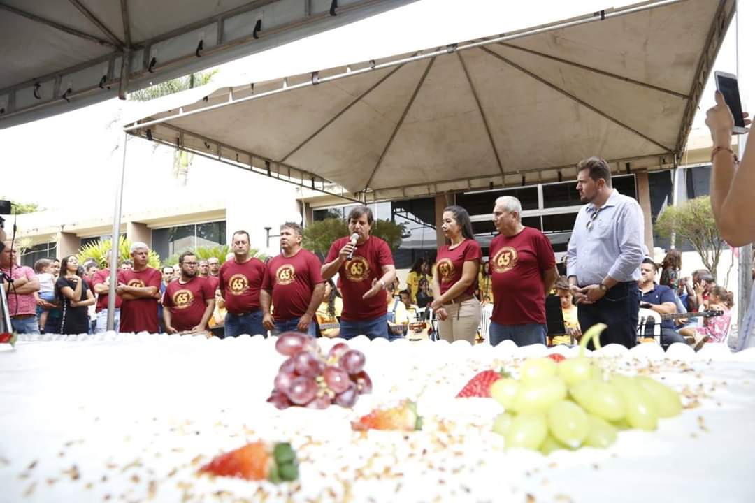 Como parte da programação das comemorações do aniversário do Município de Ouvidor, nesta sexta-feira (19/10), a população, pode saborear um delicioso bolo de 65 metros em comemoração ao aniversário do município.