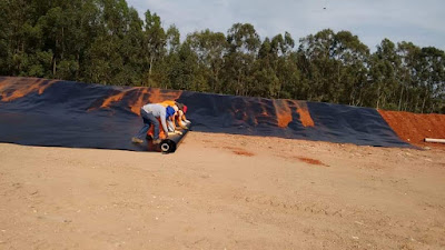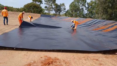 Segundo o diretor do aterro trata-se de uma manta PEAD de 2 milímetros que mede 50 x 100 (5 mil metros quadrados). Essa será a oitava célula construída no local e existem projeto para outras que virão futuramente. Estima-se que até o fim da próxima semana a célula já esteja pronta para ser utilizada.