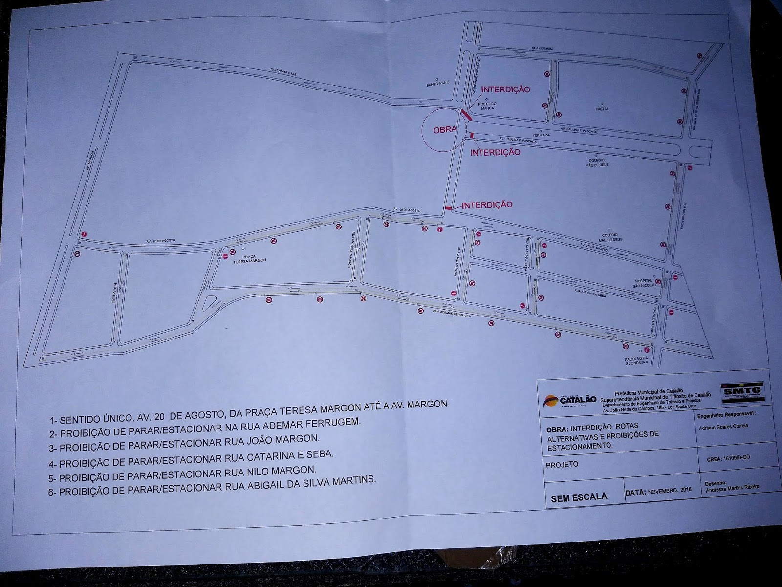 Blog Primeira Mao 12 de novembro de 2018 0 COMMENTSDurante a interdição da PONTE sobre o Ribeirão Pirapitinga na Av. RaulinaFonseca Paschoal com a Ricardo Paranhos, a Prefeitura de Catalão,através da Superintendência Municipal de Trânsito de Catalão(SMTC), estará disponibilizando rotas alternativas a todos os condutores de Catalão e região.