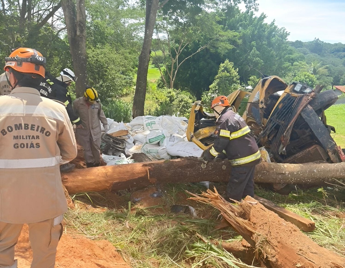 O acidente ocorreu por volta das 10h45 nas proximidades da ponte de ferro sobre o Rio Caldas, na região da Chácara Mil Milha, próximo à GO-403. Testemunhas disseram que o caminhão desceu desgovernado e acabou colidindo e capotando na sequência.
