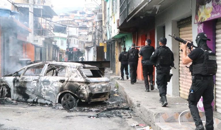 A operação foi marcada por intensos confrontos desde o início. Na chegada das equipes, ainda no fim da madrugada, traficantes reagiram a tiros e ergueram barricadas em chamas. Um vídeo chegou a registrar quase 200 disparos em um minuto, em meio a colunas de fumaça. A Polícia Civil afirmou ainda que, em retaliação, criminosos lançaram bombas com drones.