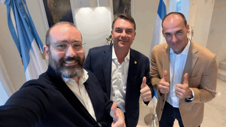 - Javier Milei compartilha foto de embaixador com Flávio e Eduardo em Israel