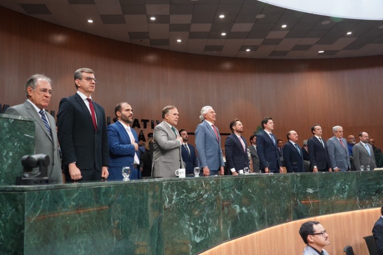 Caiado saudou o presidente da Alego, Bruno Peixoto, e destacou a sua ligação histórica com o Parlamento, ao lembrar que viveu durante 24 anos no Poder Legislativo. O governador também cumprimentou autoridades presentes e classificou o momento como um dia de comemoração, com a afirmativa de que os resultados alcançados em sete anos são fruto de parceria institucional, não de ação individual.