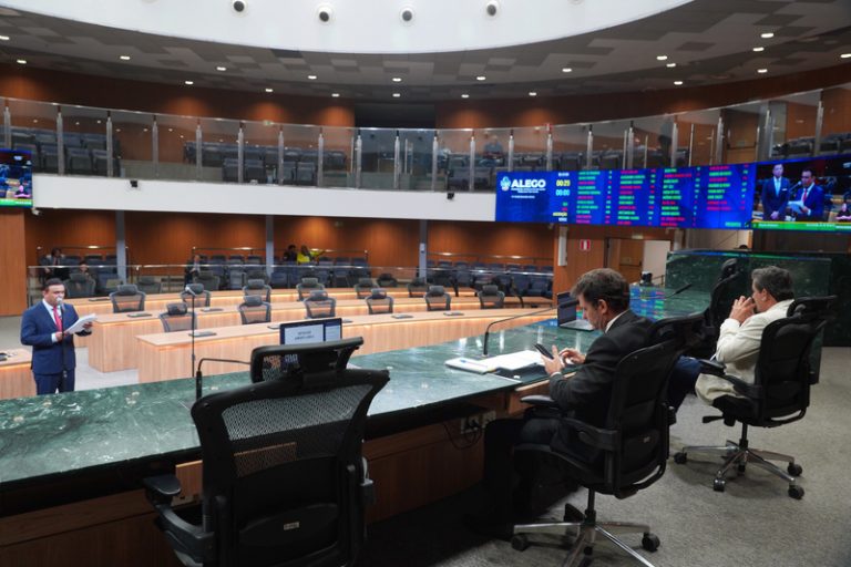 A Assembleia Legislativa do Estado de Goiás (Alego) realizou, na tarde desta quarta-feira, 8, sessão ordinária híbrida que resultou na aprovação de seis matérias, entre proposições legislativas e requerimentos. Conduzido pelo 1º vice-presidente, deputado Issy Quinan (MDB), o encontro marcou a segunda sessão deliberativa da semana e contou com a presença de 38 parlamentares no painel do Plenário Iris Rezende Machado, no Palácio Maguito Vilela.