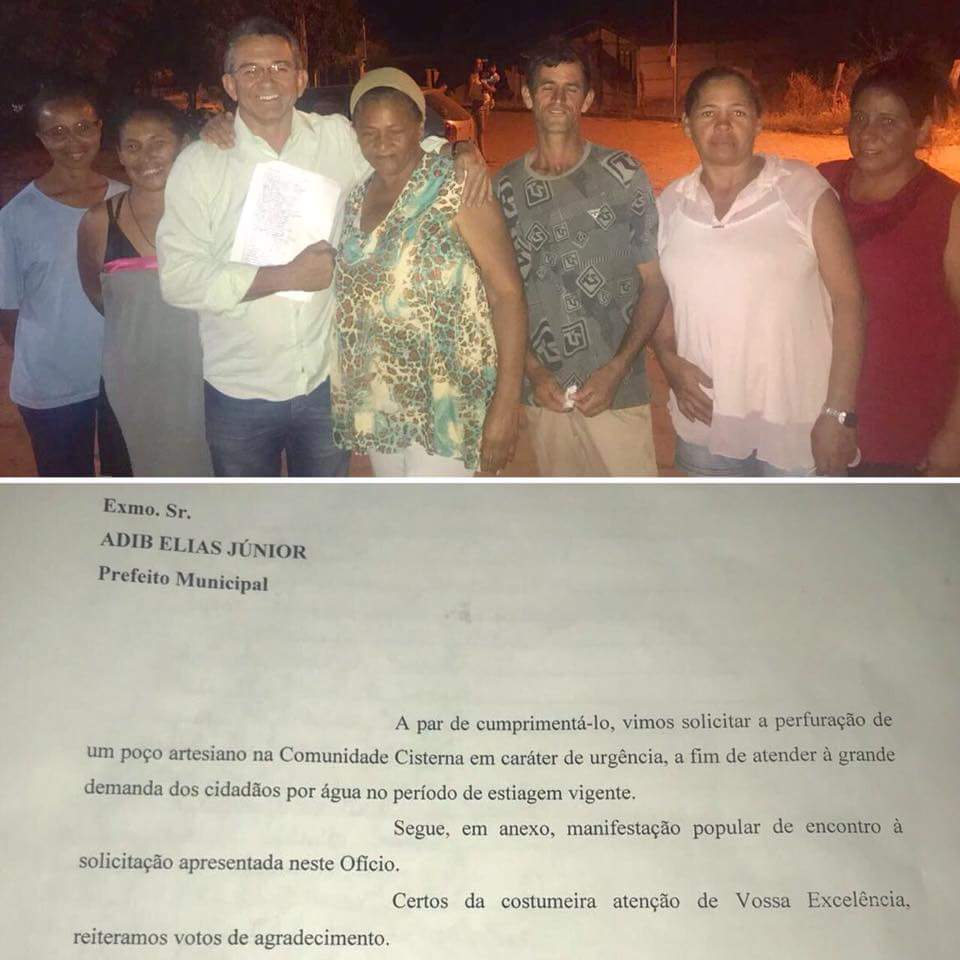 O presidente da Câmara Municipal de vereadores e pré – candidato a deputado estadual Deusmar Barbosa, visitou nesta quarta ( 04) , à Comunidade Cisterna para mostrar aos moradores pedido que esta encaminhando ao prefeito Adib Elias.